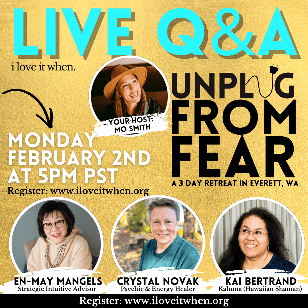 Mo is hosting a LIVE Q&A Session for the Unplug From Fear Retreat coming up next Monday, February 2nd at 5pm PST/ 8pm EST.Have questions about Unplug From Fear?Wondering what happens during the retreat?Curious about En-May, Crystal and Kai?
